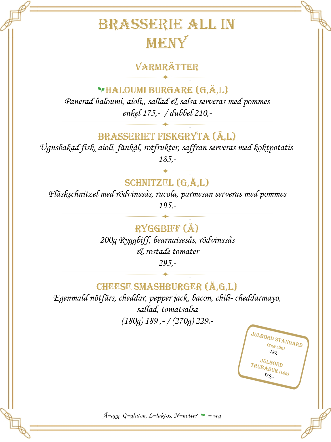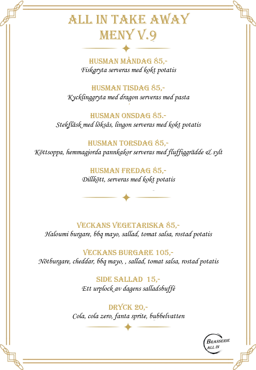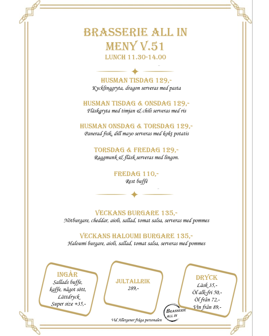 Boka på info@brasserieallin.se